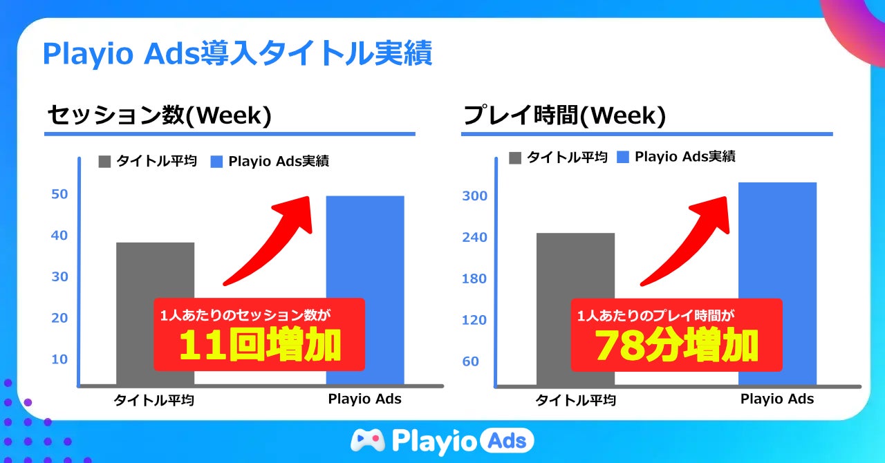 【ROAS 233%】運用型ゲーム広告「Playio Ads」の実施事例を紹介。RPGゲームでの導入後セッション数&プレイ時間、大幅増加!
