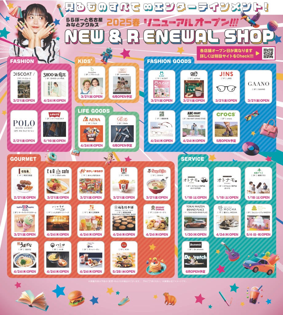 「三井ショッピングパーク ららぽーと名古屋みなとアクルス」開業以来初のリニューアル 愛知県初出店3店舗と新業態2店舗を含む新店・改装 計36店舗が順次オープン!!
