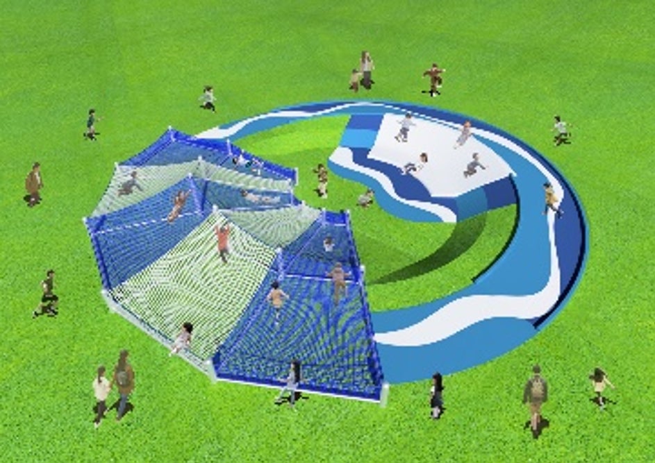 ららぽーと名古屋みなとアクルスの象徴的な屋外空間「みどりの大広場」が、子育て世代のニーズに応える新たな遊び場として生まれ変わります。約8,000㎡の広大な芝生広場の一部に、「ふわふわマウンテン」と「ラージフォール&キャナルネット」の2種類の屋外遊具を増設します。