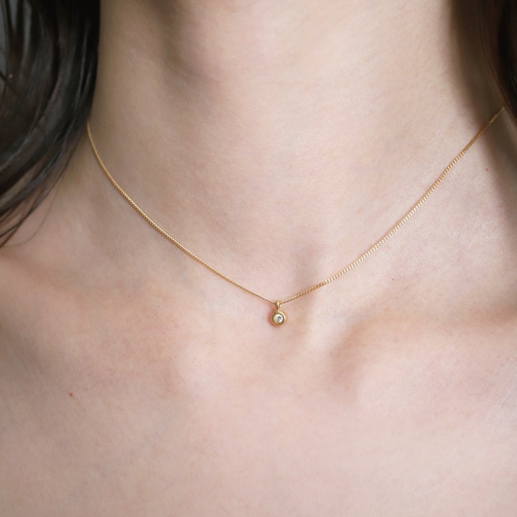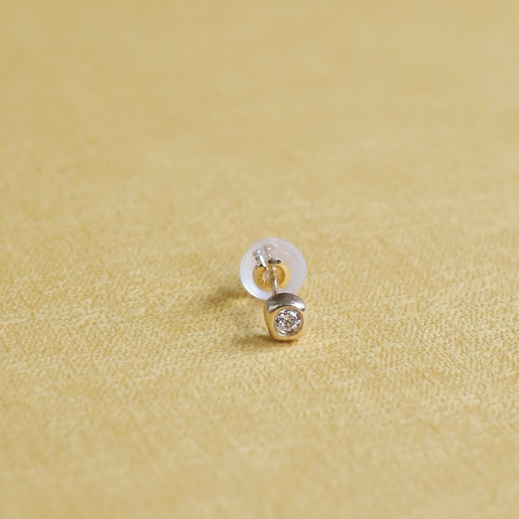 シンプルな一粒ダイヤモンドを使用したアイテム。天然ダイアモンドは、髪やお洋服に引っ掛からないよう伏せ込み留めを採用し使用感にも拘っております。