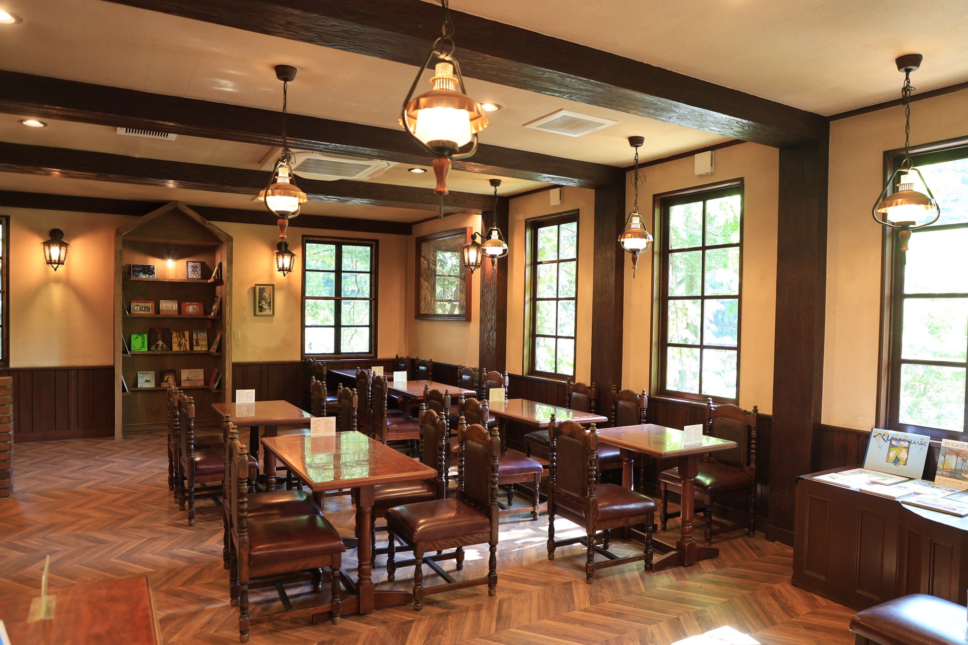 四季折々の花と水辺に囲まれながら、まるでおとぎの世界に迷い込んだかのような幻想的な絵本ミュージアム館内で、絵本を手に取りごゆっくりおくつろぎください。