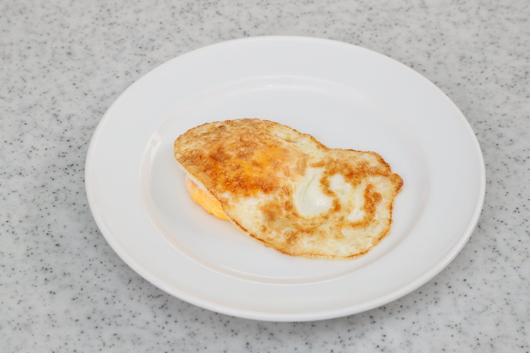 ●黄身を中央にして仕上げたい場合は、白身を半量ほど流して10秒くらい焼き、少し白くなってきたら黄身の位置を調整しながら残りを入れるときれいに仕上がる。