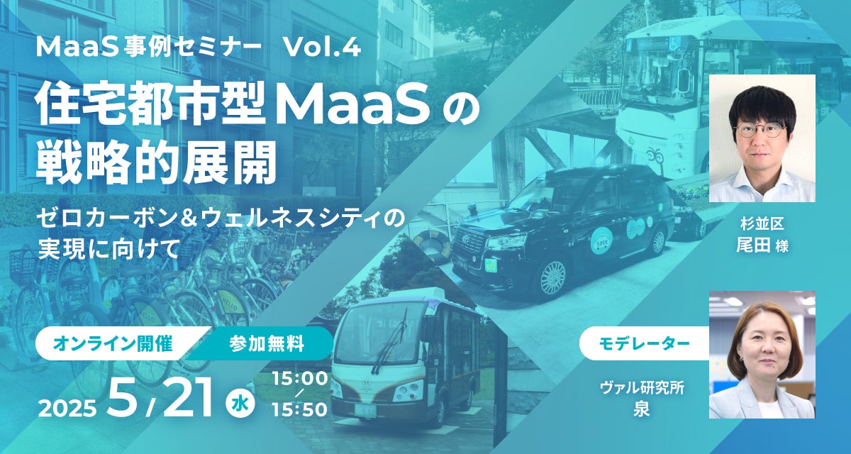 株式会社ヴァル研究所(本社:東京都杉並区、代表取締役:菊池 宗史)は、2025年5月21日(水)15:00より、無料オンラインセミナー「MaaS事例セミナー」Vol.4を開催します。