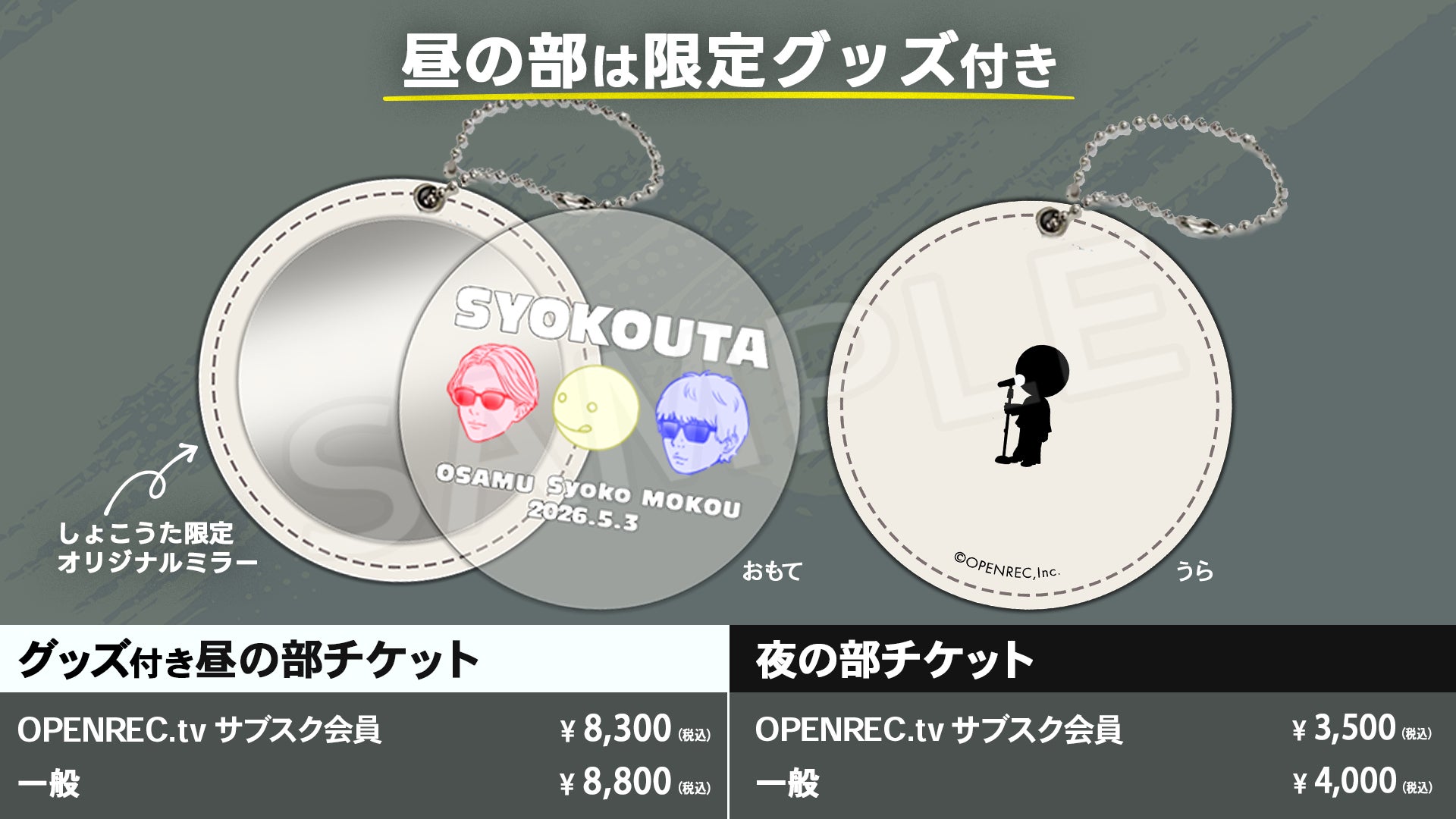 ※昼の部はいずれのチケットも「しょこうた限定オリジナルミラー」付きとなります。