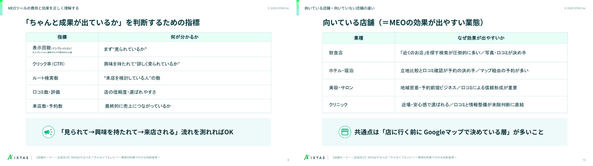 AI搭載型の店舗情報発信・分析プラットフォーム「STOREPAD(ストアパッド)」を提供するイクシアス株式会社(本社:東京都中央区、代表取締役社長 CEO:内藤 崇司)は、店舗オーナーや店長に向けて、MEO対策(マップ検索対策)の導入判断に役立つ無料資料『MEOはやるべき?やらなくてもいい?~費用対効果でわかる判断基準~』を公開しました。