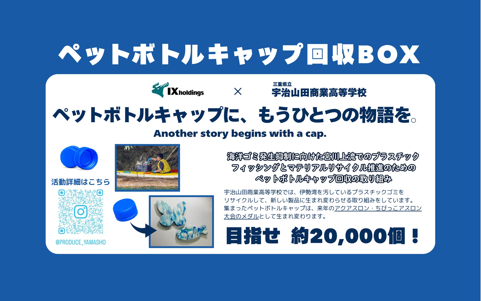 今回の取り組みを通してメダルを受け取った子どもたちが、身近なプラスチック包材が生まれ変わったことを知り、日ごろの分別やリサイクル意識が高まることを期待しています。また、本年よりIXホールディングスと三重県立宇治山田商業高校が取り組むペットボトルキャップの回収活動を伊勢志摩・里海トライアスロン大会と連携して実施します。回収ボックスを同大会のスポンサーである前野段ボール株式会社様に制作していただきました。来年度は、大会で使用したペットボトルのキャップを材料にメダルの制作を予定しています。この大会におけるSDGsの取り組みと連動し、活動を継続してまいります。