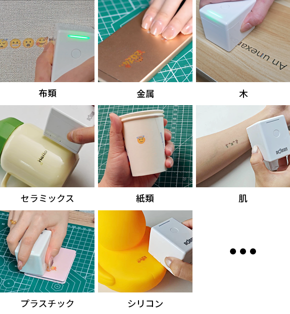 サイズや素材、場所に制限されることなく、印刷したいところに直接プリンターを滑らせることによって印刷できます。