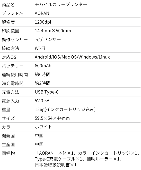 ■商品名 超小型モバイルカラープリンター「AORAN」