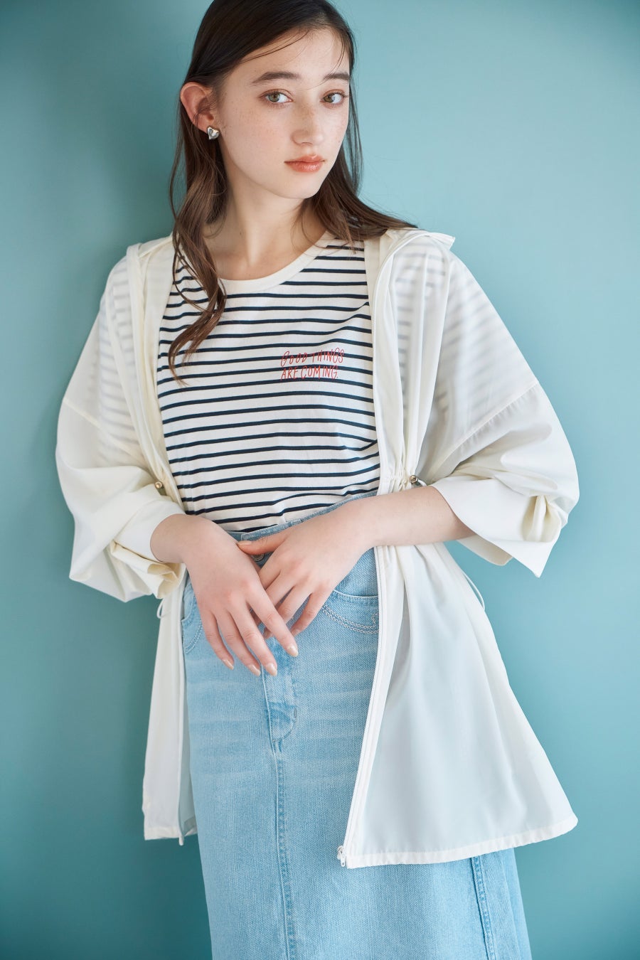 羽織るだけで日焼けを防止できるUVカット機能付きのパーカー。薄くて軽く、透け感のある見た目で涼しげな印象です。袖口はタブの留め方でチェンジできる2way仕様。ヒップが隠れるゆとりあるシルエットで、インナーを選ばず羽織ることが可能です。
