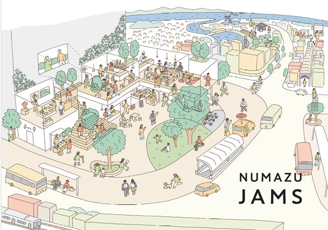 拠点名称は「NUMAZU JAMS(ヌマヅ ジャムズ)」に決定しました。「JAMS」は、「Jam Session(ジャム・セッション)」に由来しています。「楽譜にとらわれない即興的な演奏」が持つイメージに、「多様な人々が集い、まちの賑わいをみんなで一緒に創り上げていく(みんなでまちを奏でる)」という、施設コンセプト「湊(みなと)」の願いを重ねました。