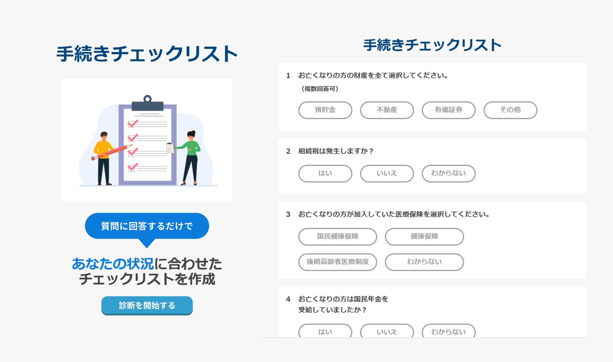 「手続きチェックリスト」で相続手続きをより簡単に、誰もが自宅でスムーズに進められます。