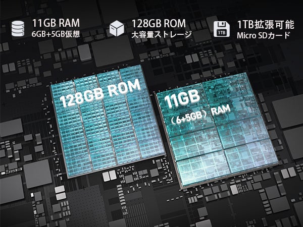 DOOGEE T10S タブレット 10インチ 本体には、6 GB LPDDRX4規格のRAMが搭載されています。さらに、メモリ拡張テクノロジにより、11GB仮想メモリまで拡張可能ことで、タブレットの実行速度を大幅に向上させます。ストレージは128GBで、読み書き速度がはるかに速くなります。また、最大1TB TFカードをサポート。