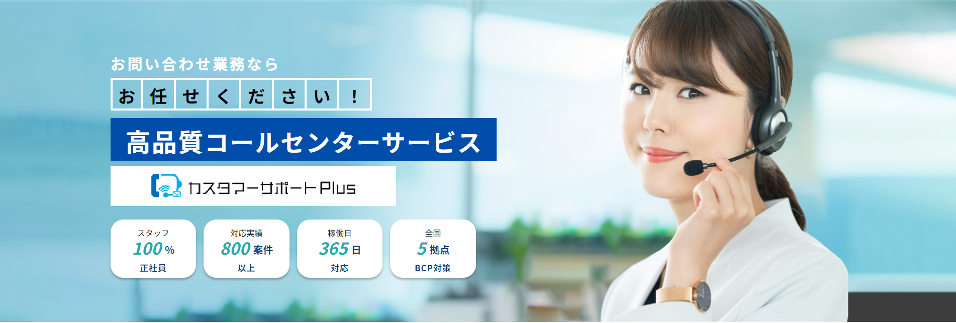 弊社では、コールセンター代行サービス「カスタマーサポートPlus」を提供しています。