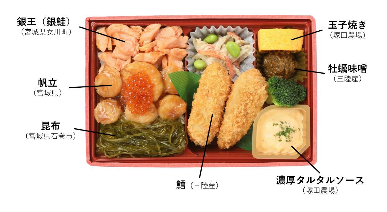 そのほか、楽屋弁当・ロケ弁で人気の高い<絶品!塚だまタルタル若鶏のチキン南蛮弁当>や<漁師とコラボして作った国産銀鮭弁当>、<岩手県大船渡漁港 目利き厳選天然真鯛の極上鯛めし弁当>などの販売も予定しております。弁当は新幹線で輸送される「はこビュン」を利用して届きます!