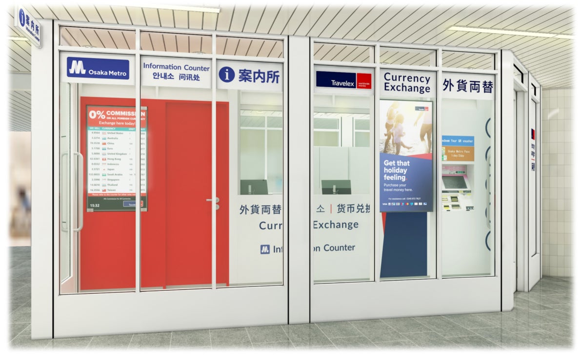 トラベレックスは、外貨両替のパイオニアとして、世界中の主要都市で数多くの店舗を展開し、長年にわたり旅行者および地域社会のニーズに応えるサービスを提供してまいりました。このたびの新店舗は、Osaka Metro なんば駅北東改札口横に位置し、国内外の観光客に加えて地域住民の皆さまにとっても身近で便利なロケーションにございます。