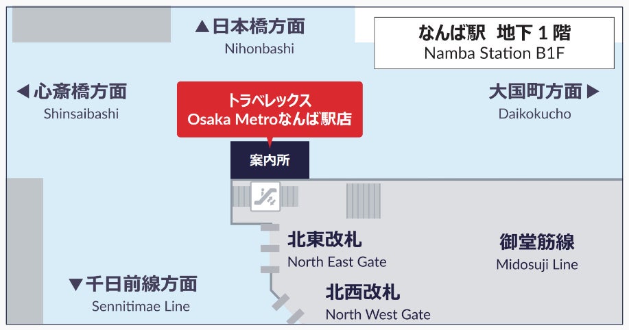 なんばエリアは、関西地域の主要な交通・商業の中心地であり、訪日外国人観光客やビジネスパーソンなどが数多く集まるエリアです。加えて、大阪・関西万博を2025年に控え、ますます高まる観光需要や国際交流の拠点として、多様な人々が訪れる場所となっています。こうした背景を踏まえ、トラベレックス Osaka Metro なんば駅店では、地域と密接に結びつき、訪れるすべてのお客様に利便性と快適さを提供するべく、新店舗をオープンいたします。