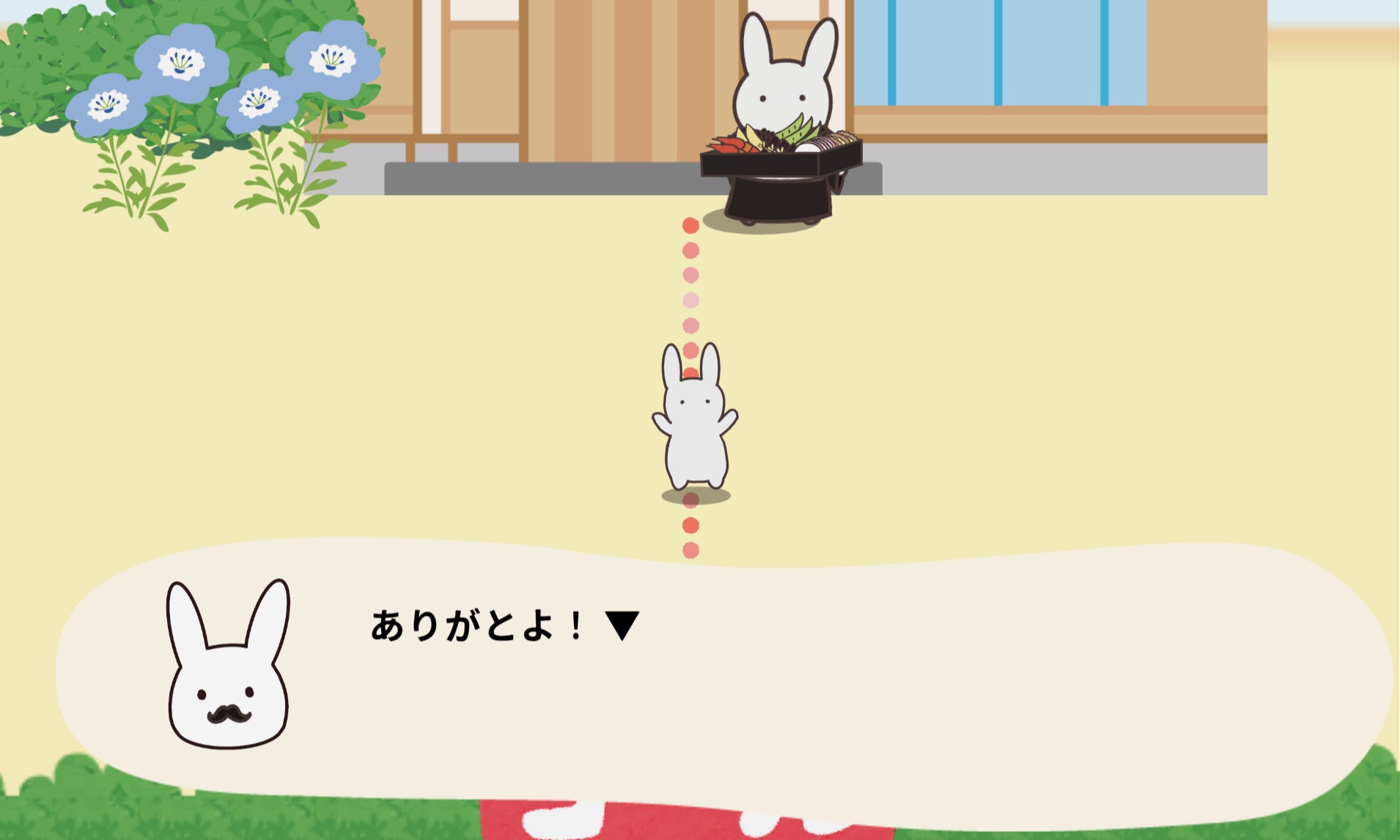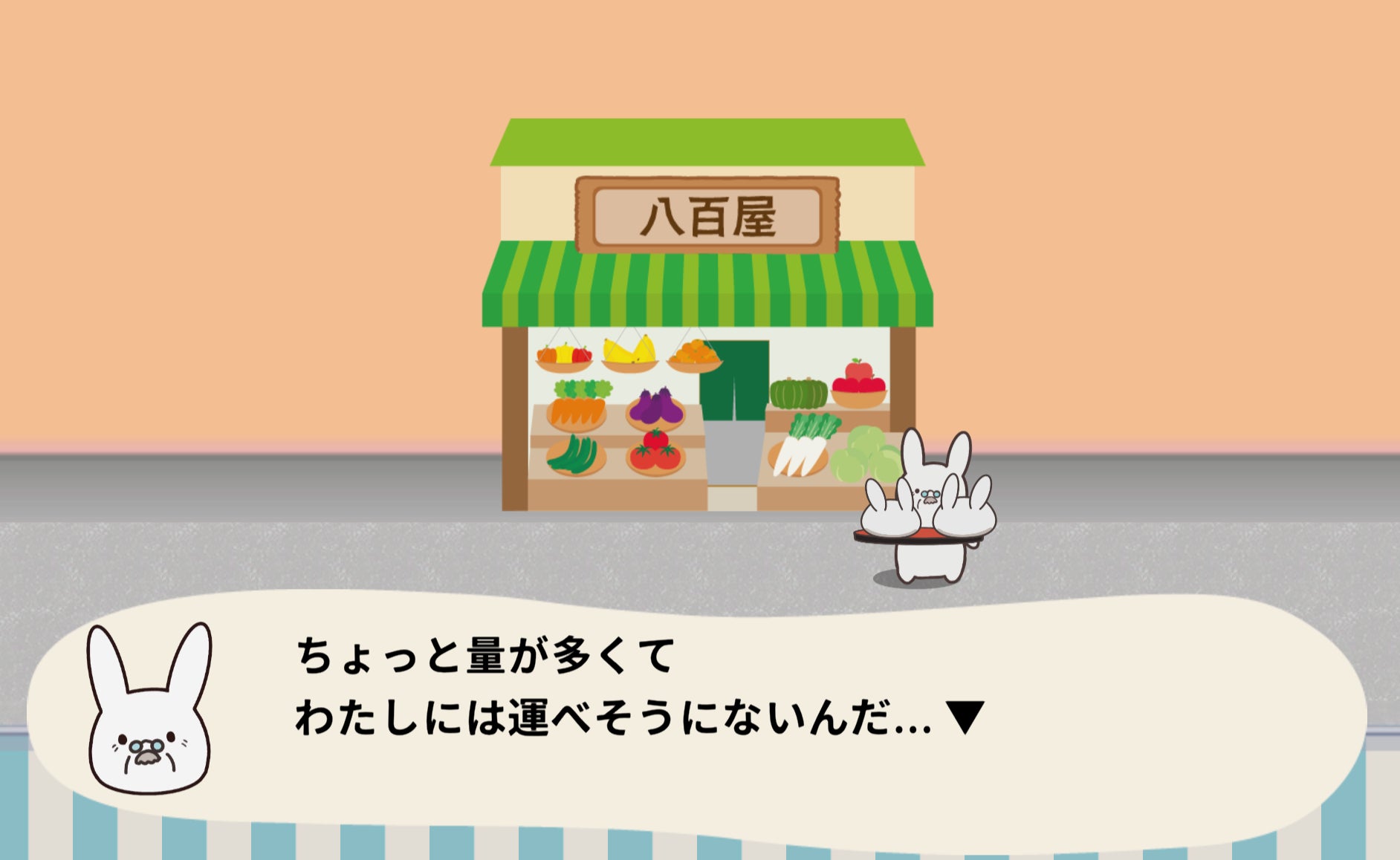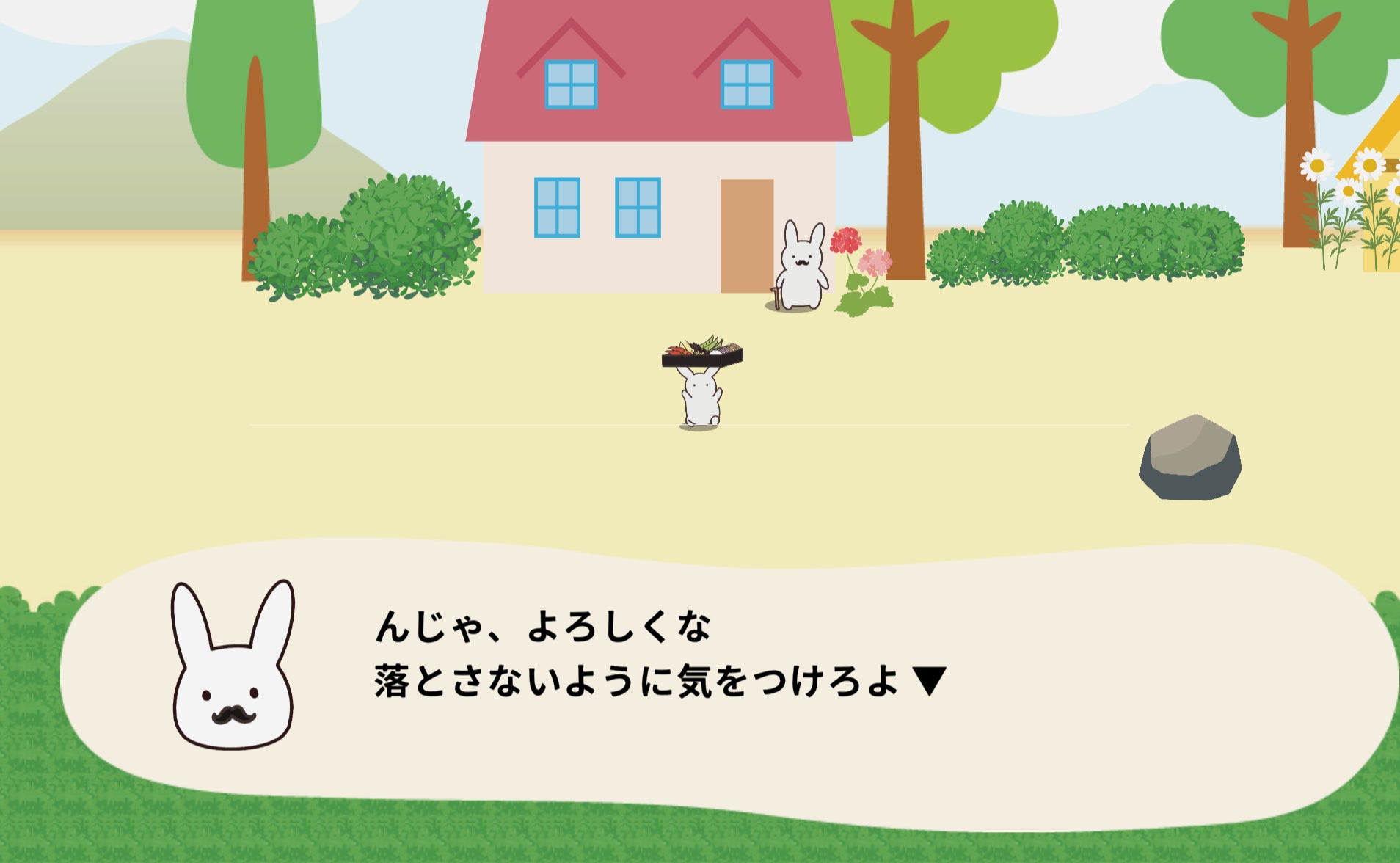 お届けに成功してステージクリアした時や、運んでるものを落としてしまった時に、うさぎのアニメーションが入ります。かわいらしくて時にシュールなアニメーションにも是非ご注目ください。