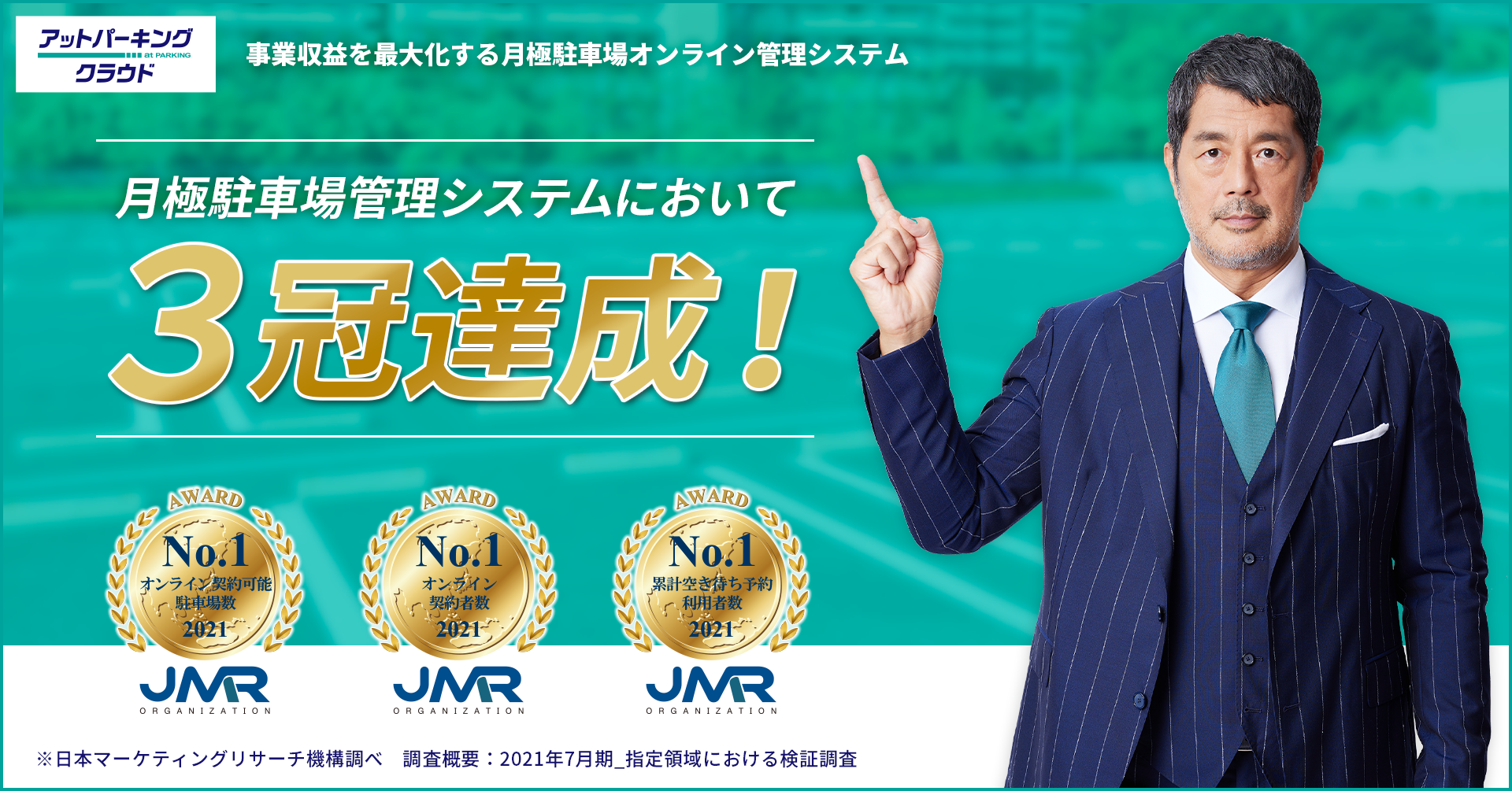 日本マーケティングリサーチ機構が、2021年7月に駐車場管理システム分野において実績調査を実施した結果、『オンライン契約可能駐車場数 No.1』『オンライン契約者数 No.1』『累計空き待ち予約利用者数 No.1』を獲得し、3冠を達成しました。
