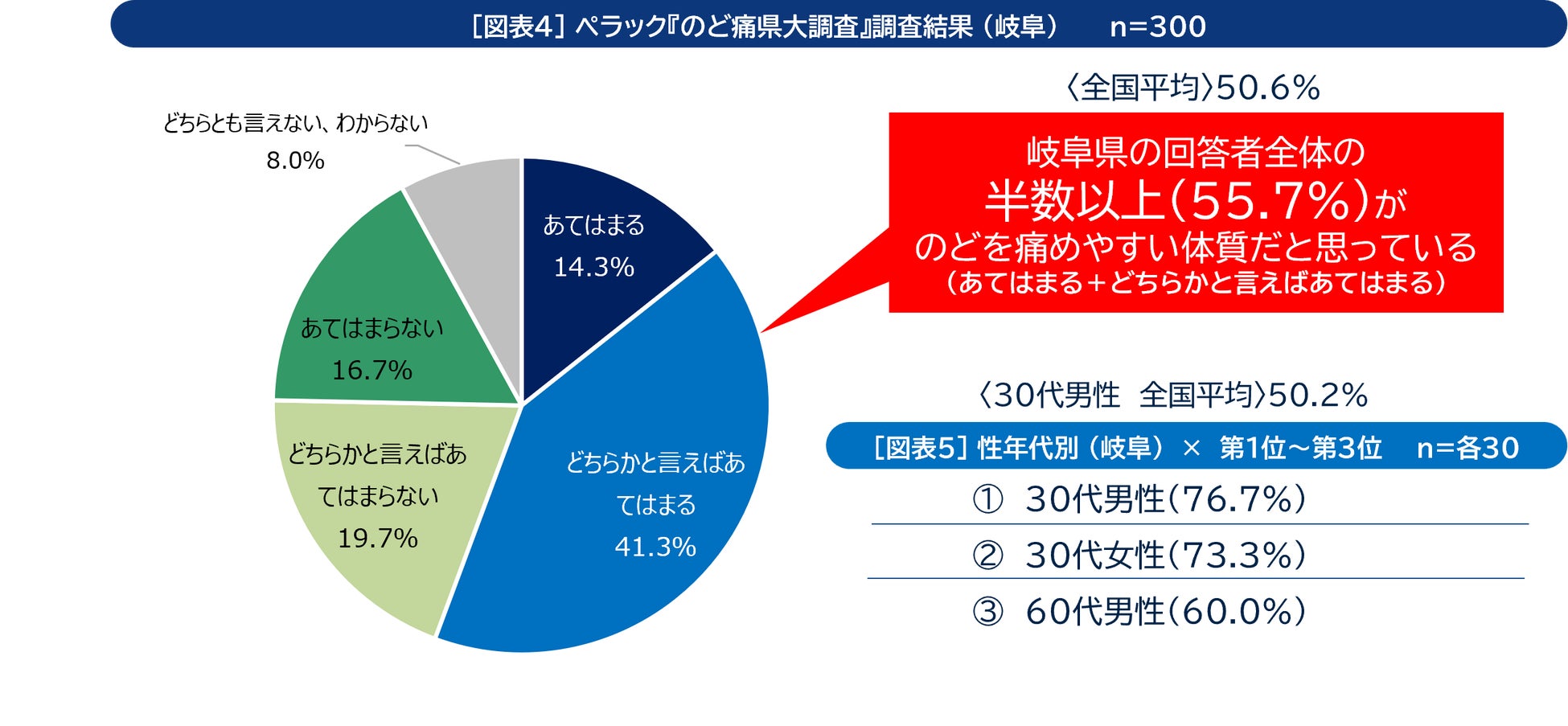 ◆岐阜県の30代男性に関しては、76.7%が「のどを痛めやすい体質だと思う」と回答。