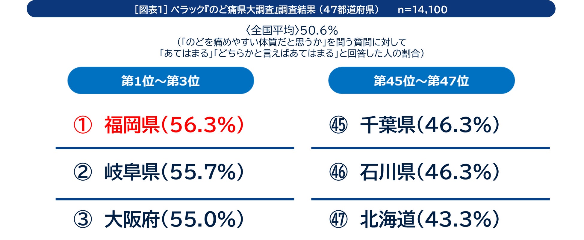 〈全国47都道府県14,100人が対象!ペラック『のど痛県大調査』実施〉