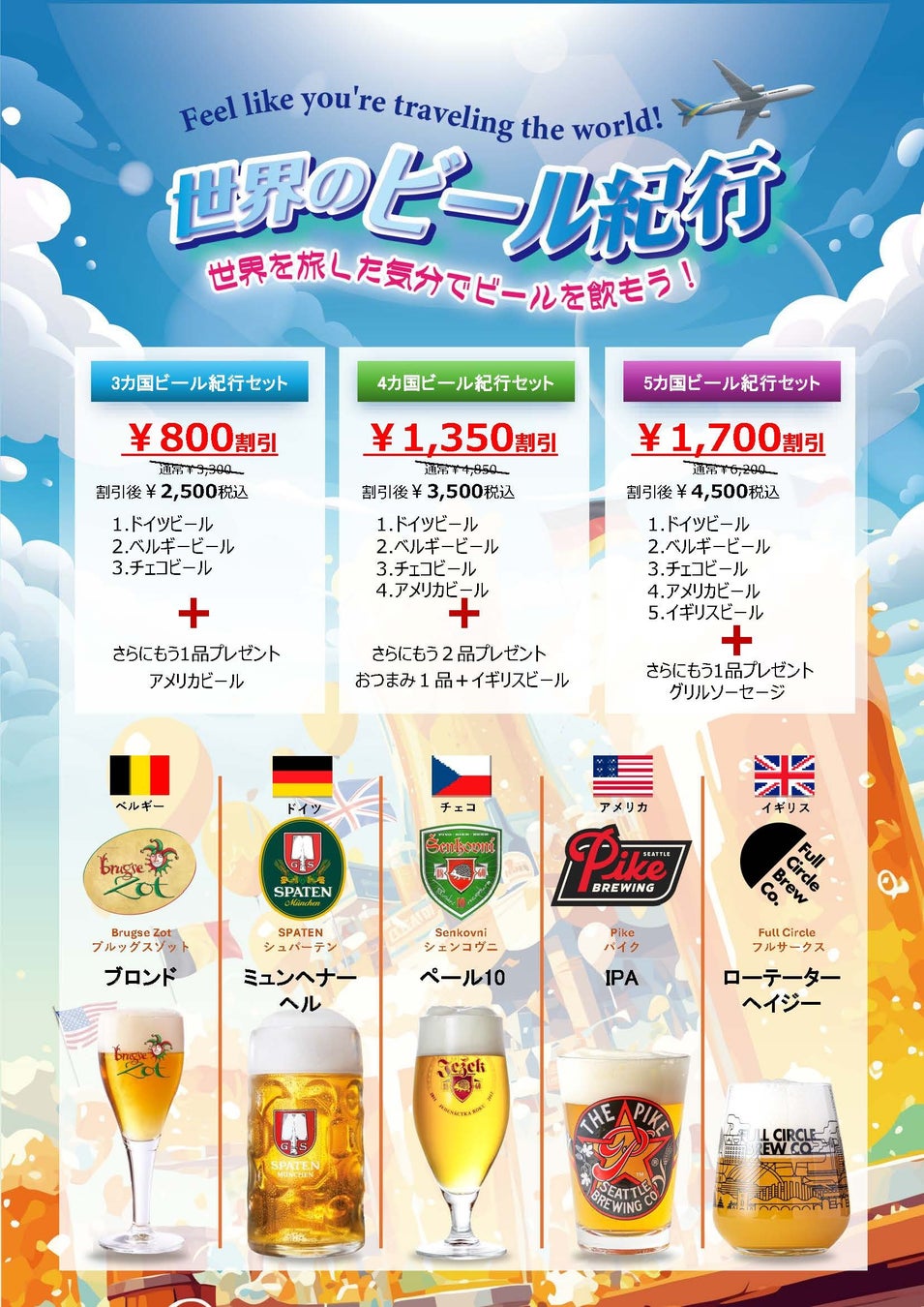 世界のビール博物館など全国直営店で実施!「ビール紀行〜旅するように世界のビールを飲み比べ。特典付きビアセレクション~」開催期間:7月1日(火)~18日(金)