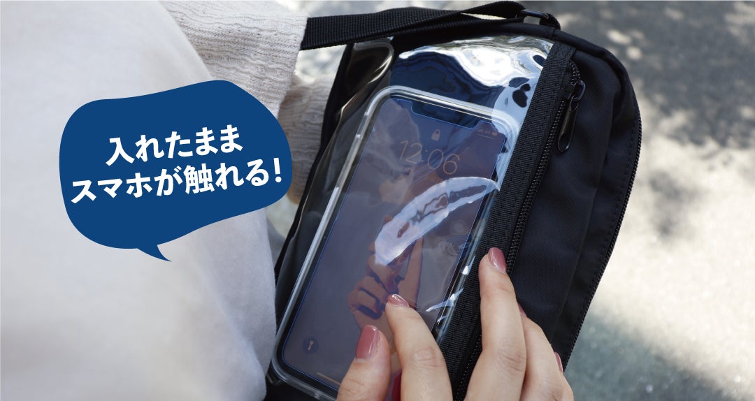 背面のPVCポケットはスマホ対応なので入れたままで操作が可能!