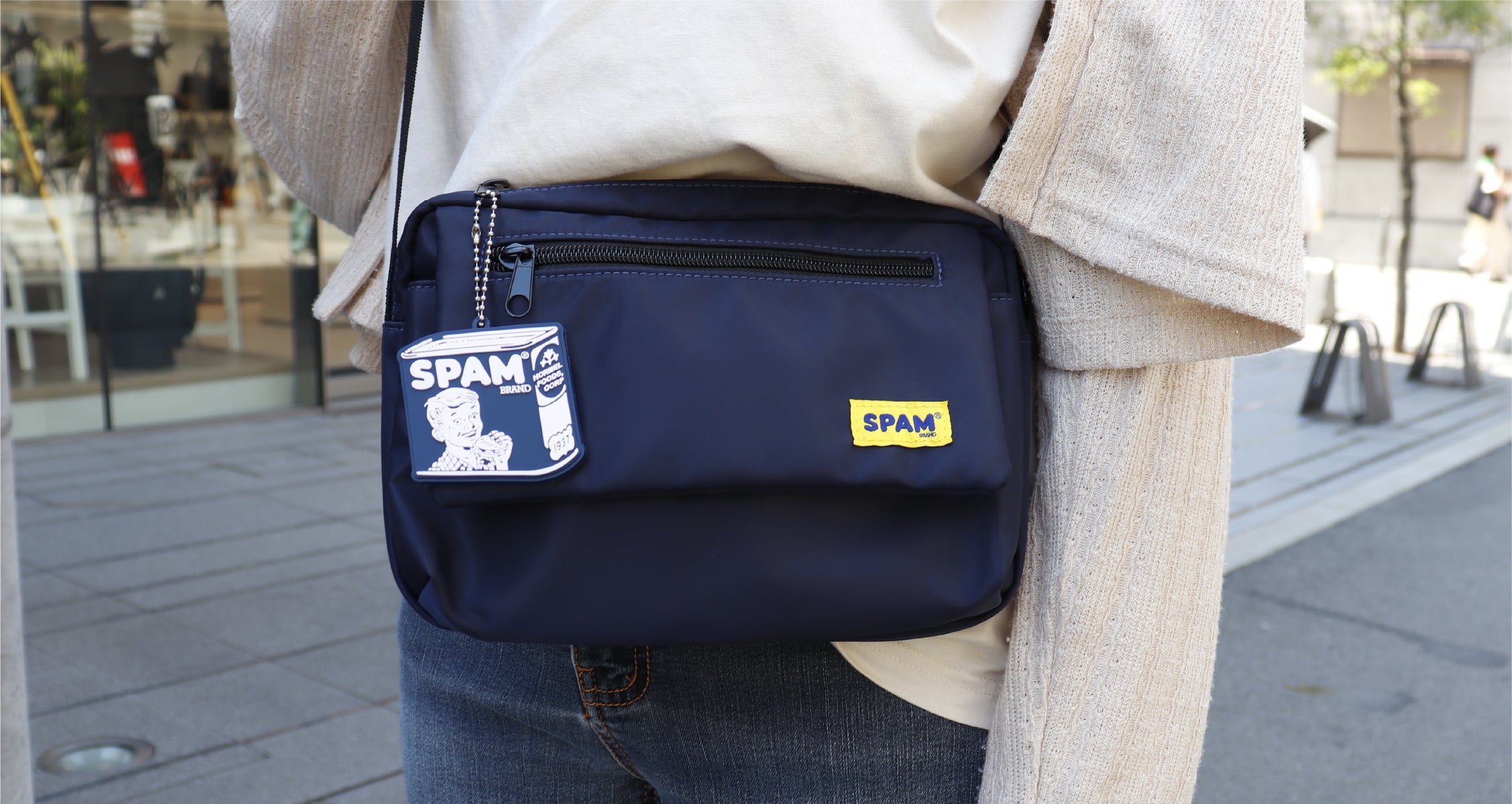 SPAMロゴのラバーキーホルダーがとってもキュート♪6ポケット付きで収納力バッチリのショルダーバッグ。