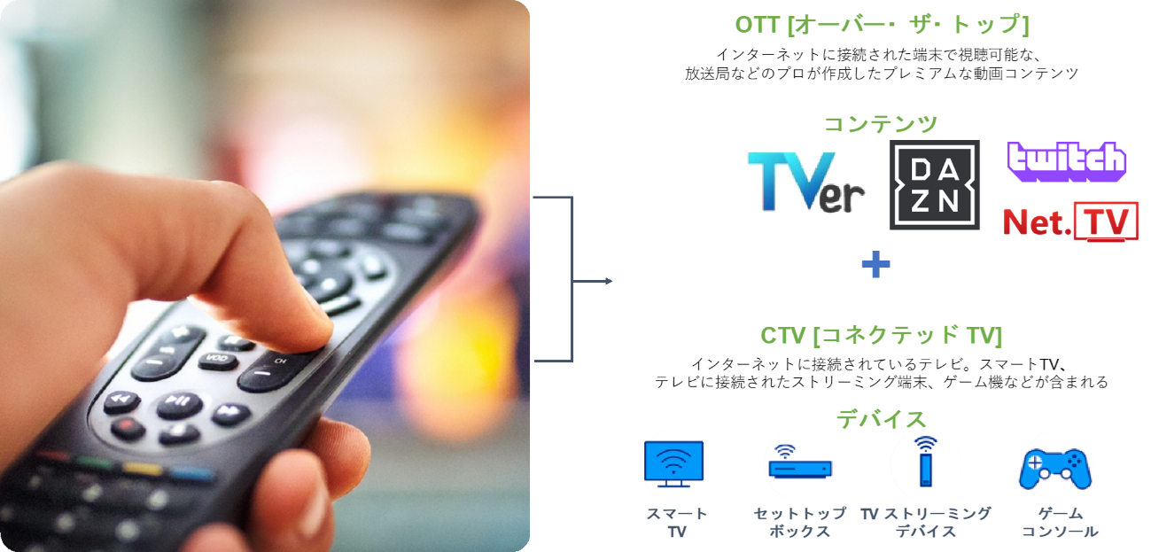 CTV:コネクテッド TVの略称でインターネットに接続されているテレビ。スマートTV、