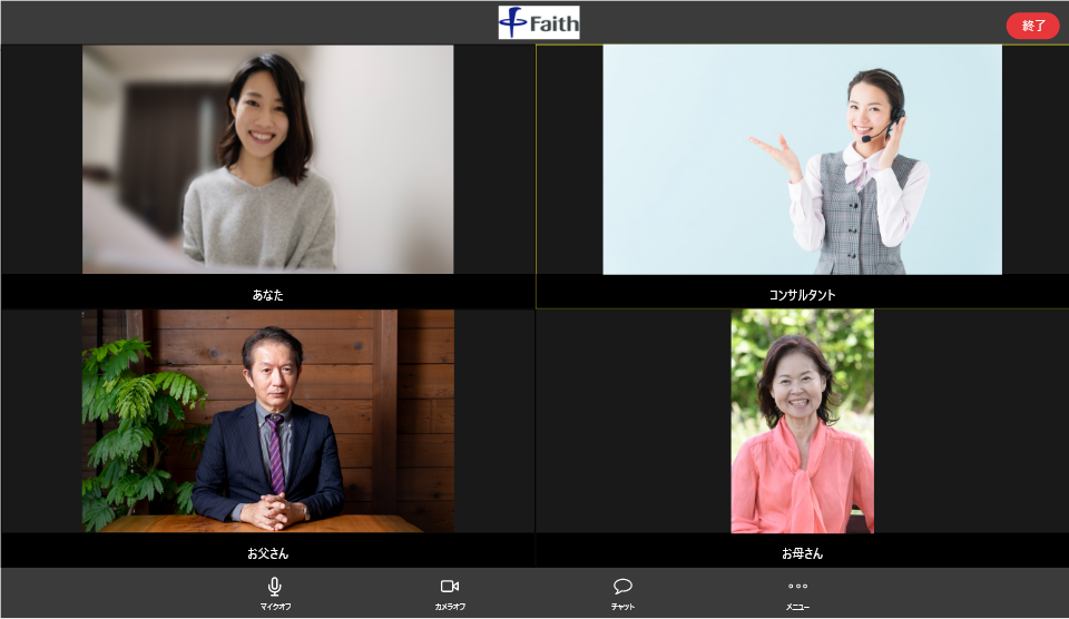 1対1での相談はもちろん、友達や家族と複数の拠点から参加することができます。予約時に発行されるURLの共有のほか、即時相談時にも「招待機能」を利用することで、遠く離れたご両親に対し、パソコンの使い方の説明なども可能となります。