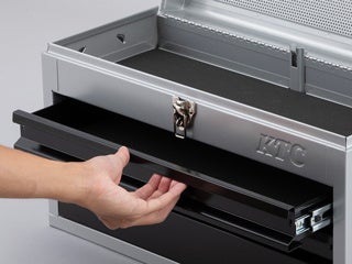チェストのカラーが映えるフラットなデザインと、チェストと一体化したエンボス加工のKTCロゴが特長。収納力はそのままに、使いやすさにとことんこだわったチェストです。