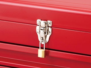 小型でも強力なパチン錠だから1箇所でもしっかりロック。片手で楽に開閉ができます。φ5mm以下の南京錠(別売り)で施錠も可能です。