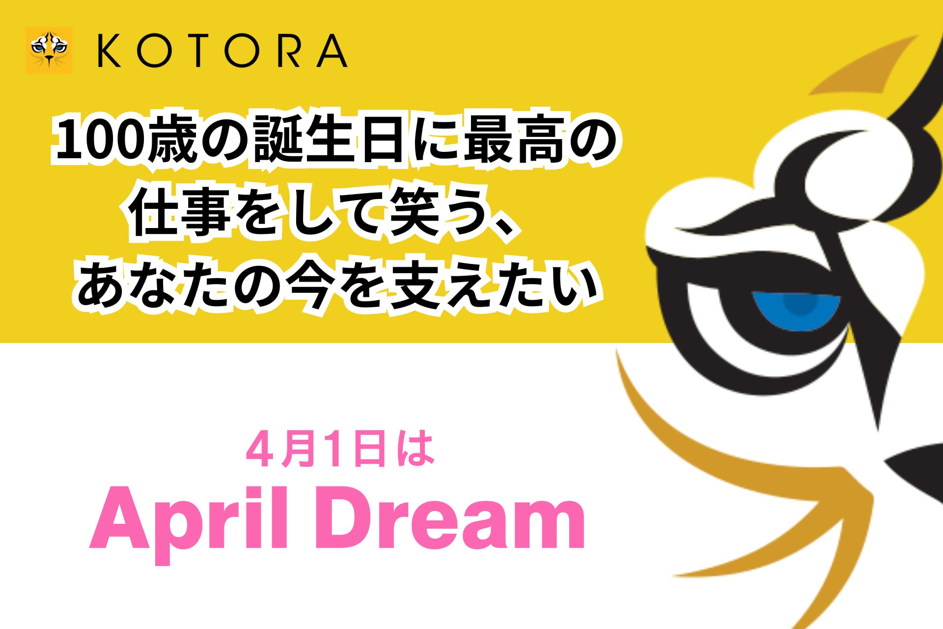 株式会社コトラ(本社:東京都港区、代表取締役:大西 利佳子)は、「100歳の誕生日に最高の仕事をして笑う、あなたの今を支えたい」という夢を掲げ、2026年のApril Dreamに参加します。