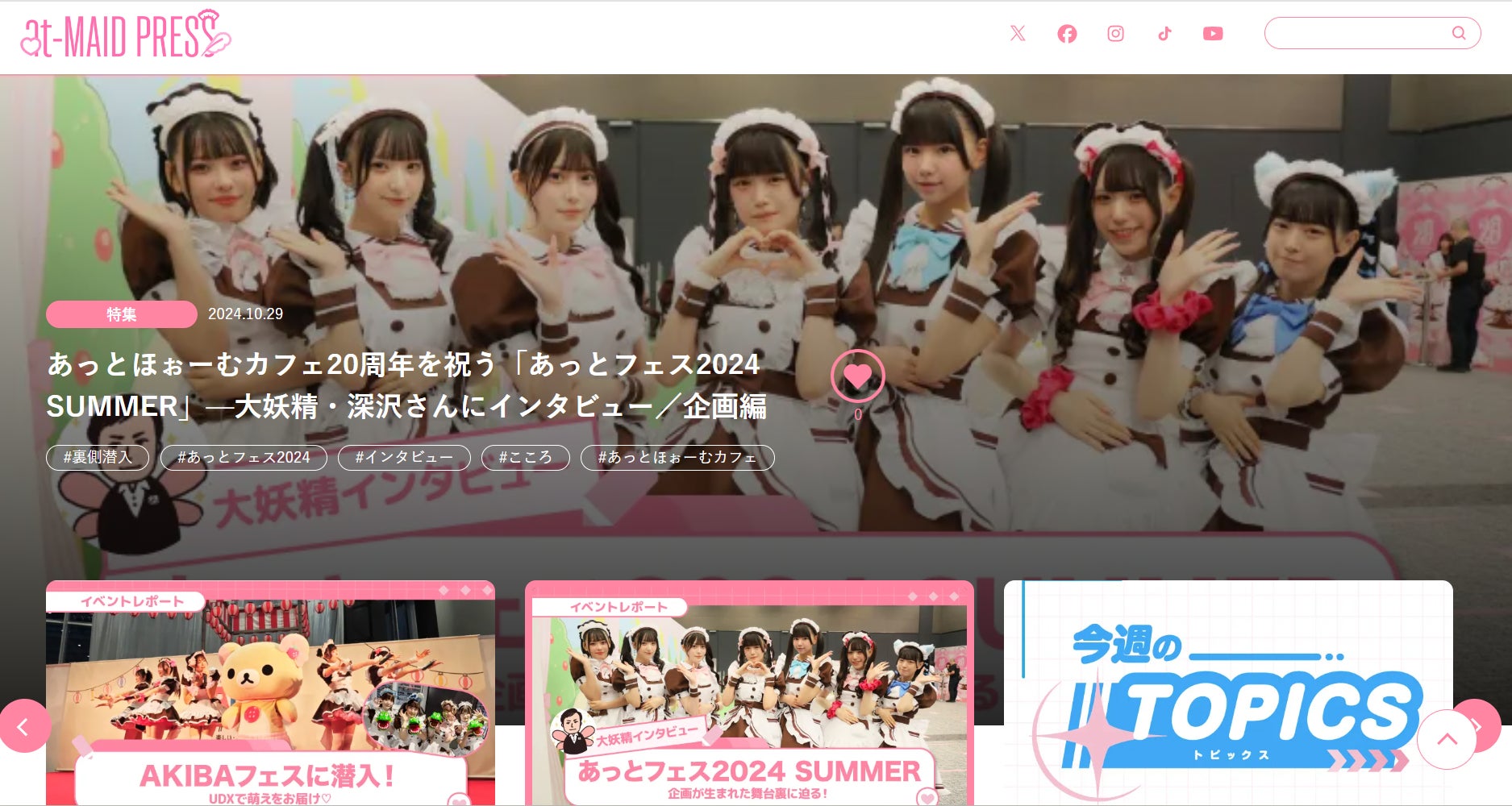 2024年11月1日(金)にリリースされた「あっとメイドプレス」(URL:https://press.cafe-athome.com/)は企画・取材・執筆といった記事作りからあっとほぉーむカフェで働くメイドが“記者”として携わり、自ら発信していくオウンドメディアです。