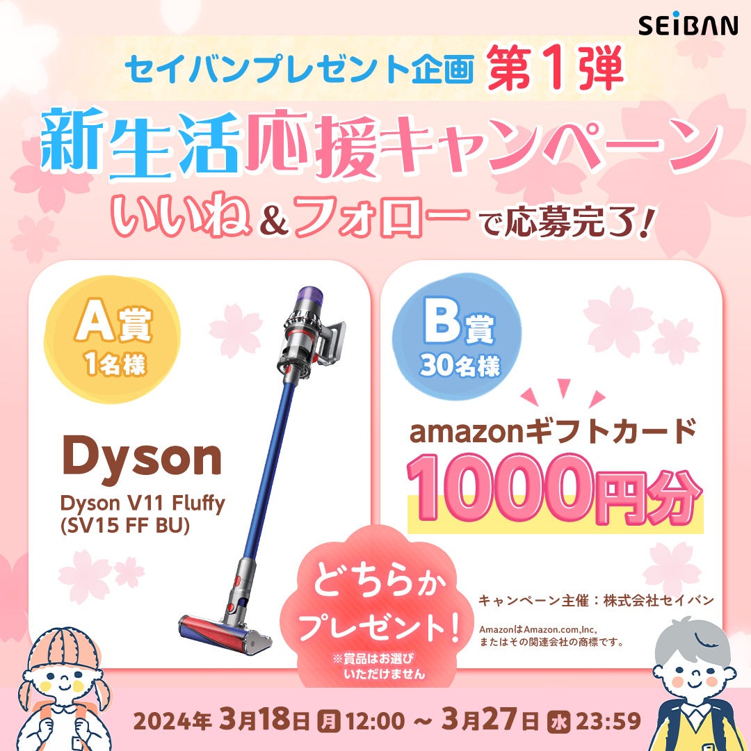 「毎月当たる!セイバンプレゼントキャンペーン」開催決定!新生活を応援し、第1弾はダイソンコードレスクリーナーとAmazonギフト券をプレゼント