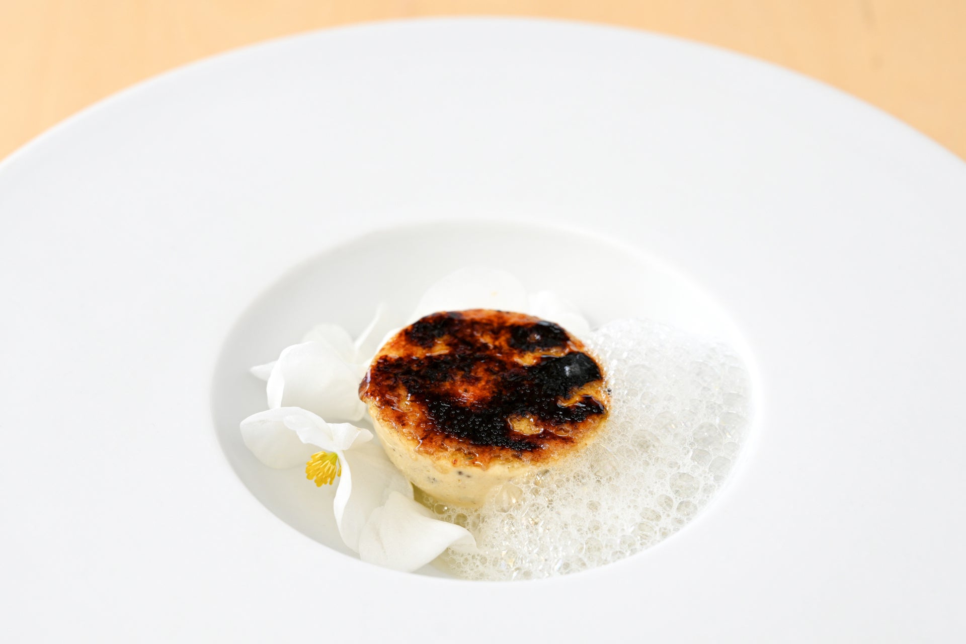 ・トンカ豆のクレームブリュレ、自社農園で育てたシャインマスカットのエスプーマ-(f)