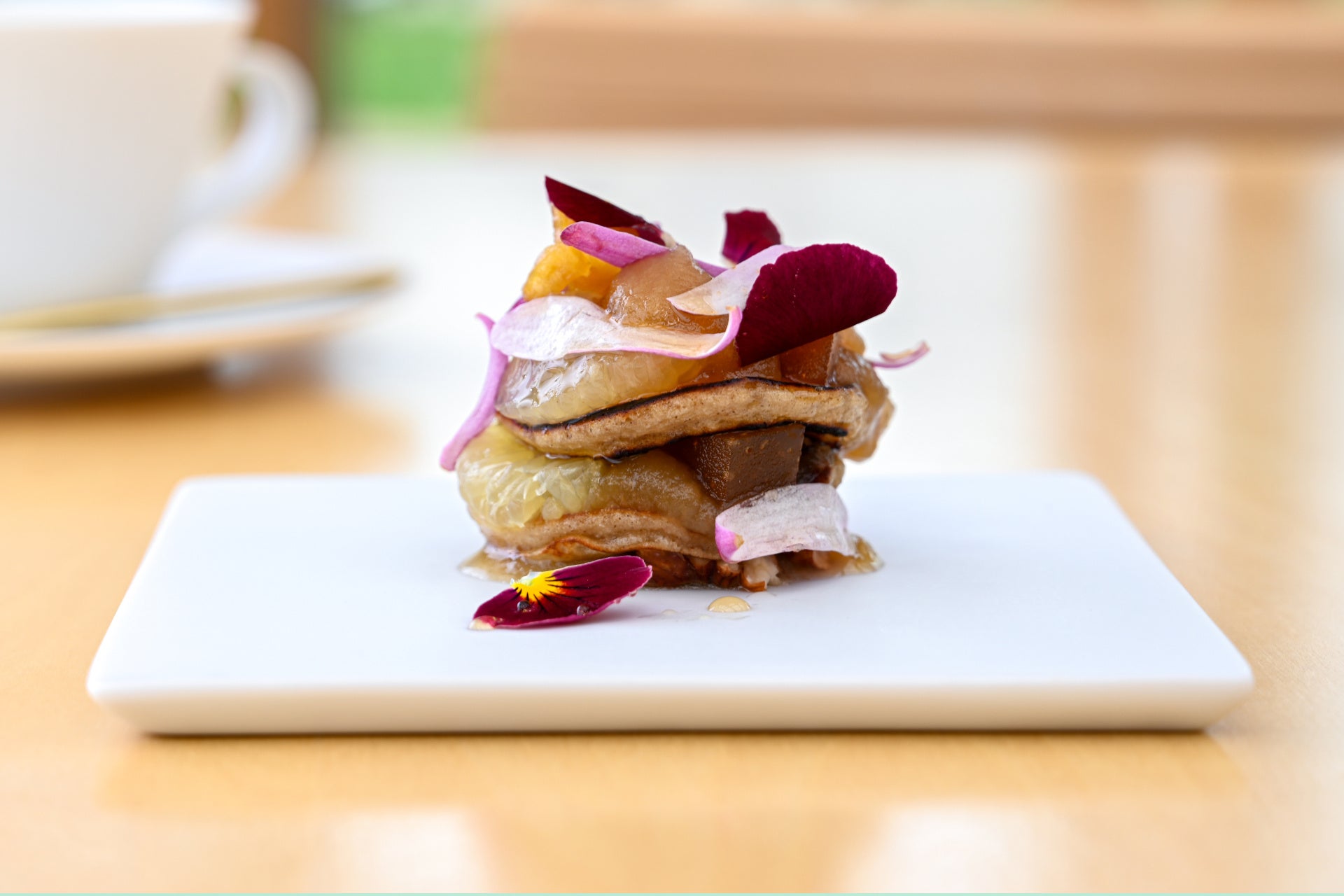 ・ラクレットのブリヌイ、林檎のコンポート、マルメロのアテ(果物をじっくり煮詰めて固めた、メキシコの伝統菓子)-(h)