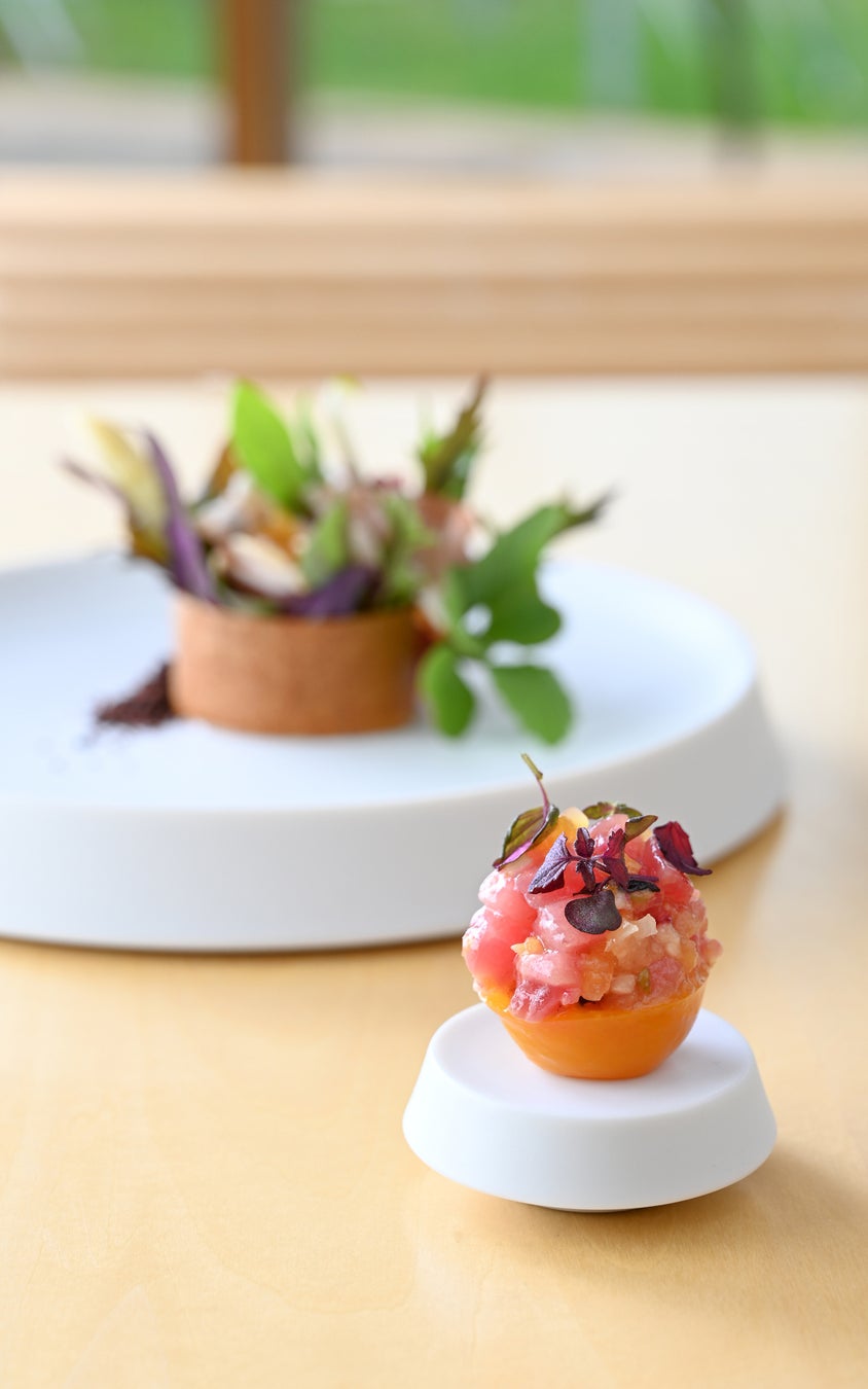 メキシコ人シェフ マルコ・サントスコイが母国の伝統調理法や食材を巧みに取り入れながら、北陸の上質な旬の食材・自社農園で育てた新鮮な野菜を研ぎ澄まされた一皿へと仕立てます。