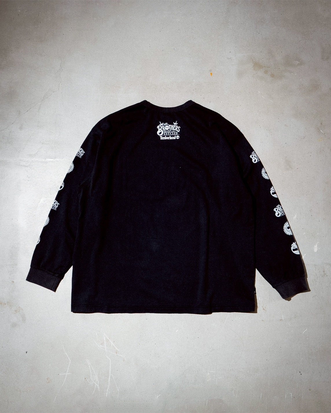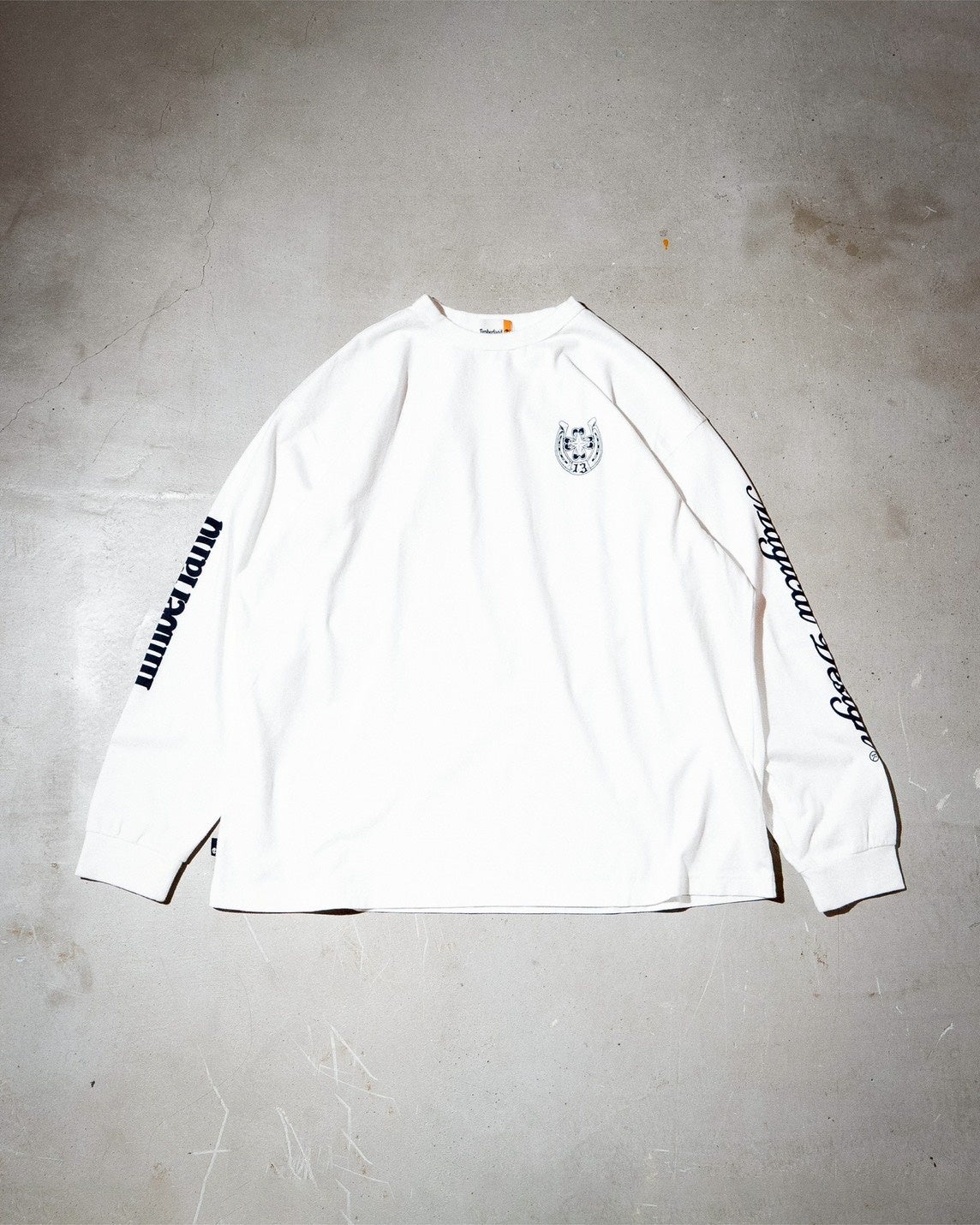 一方TシャツとロングスリーブTシャツは、それぞれデザインの異なるホワイトとブラックの2カラーを展開。どれも“オリジナル イエローブーツ”に落とし込まれている内山氏のモチーフを大胆に引用し、今回を記念したスペシャルなコラボレーションロゴとあわせてバックやアーム部分にあしらわれています。