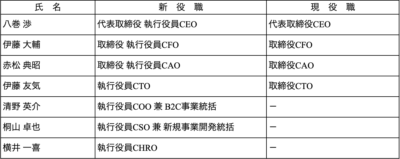なお、この度の決議に伴い、以下のような経営体制に変更しています。