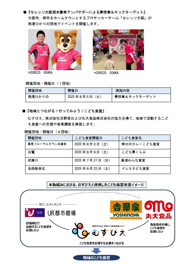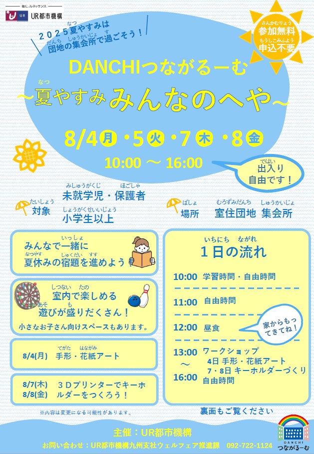 独立行政法人都市再生機構(以下、UR都市機構)は7~8月、夏休み期間に子どもの居場所づくりとなるイベントを全国の団地で開催します。