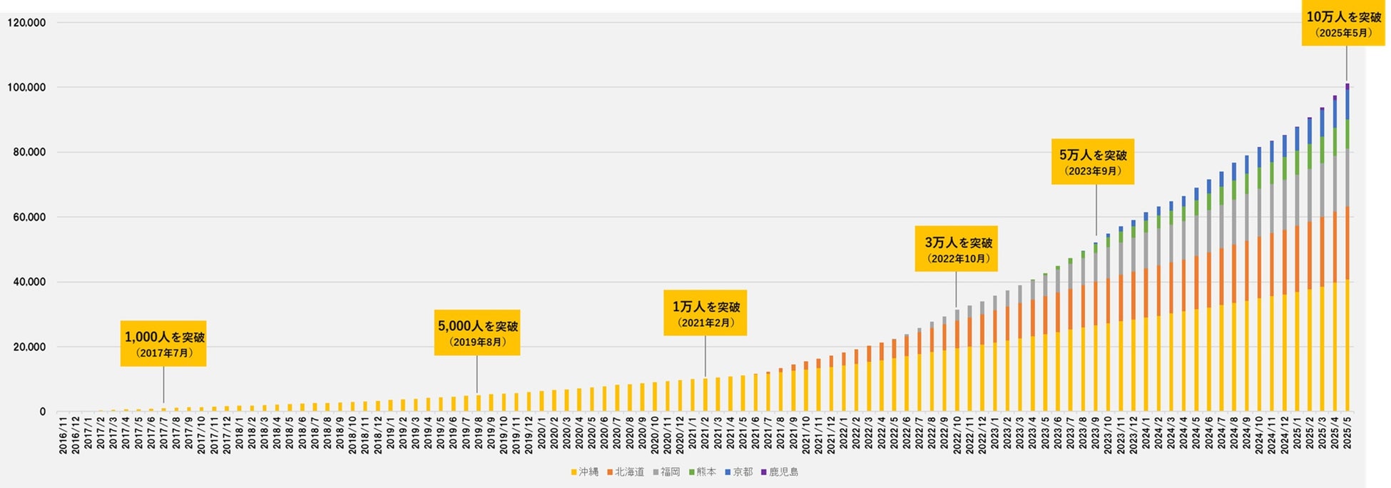 インタラクティブ株式会社(本社:沖縄県宜野湾市、代表取締役社長:臼井 隆秀、以下「インタラクティブ」)が運営する地域特化型の双方向な求人マッチングサービス「ジョブアンテナ」は、2025年6月5日(木)にて、沖縄・北海道・福岡・熊本・京都・鹿児島の六拠点における登録会員数が10万人を突破し101,124人となりましたのでお知らせいたします。