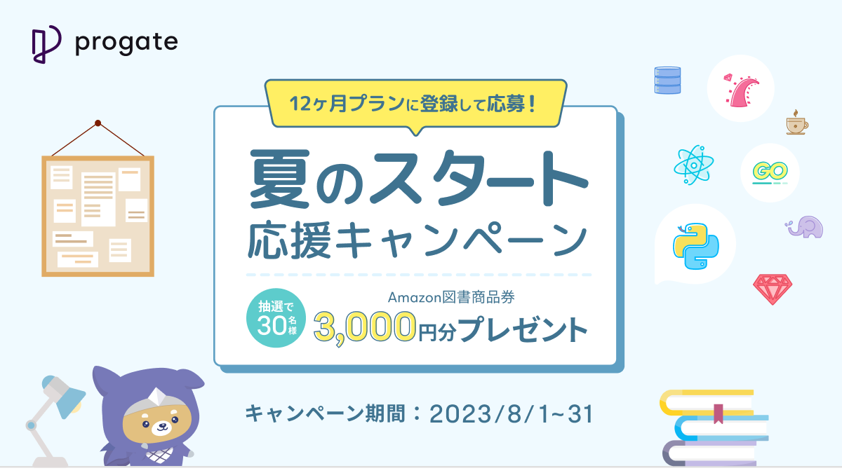 今回のキャンペーンでは、学生・社会人とも夏休みを取得される方が多い時期に合わせ、みなさまのプログラミング学習のスタートを後押しする企画として開催いたします。