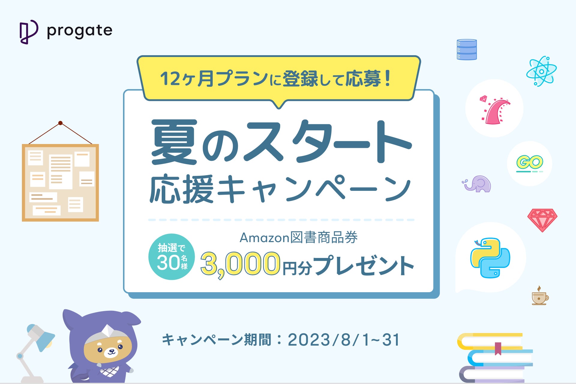 ・本キャンペーンについてのお問い合わせはAmazonではお受けしておりません。Progate事務局までご連絡ください。