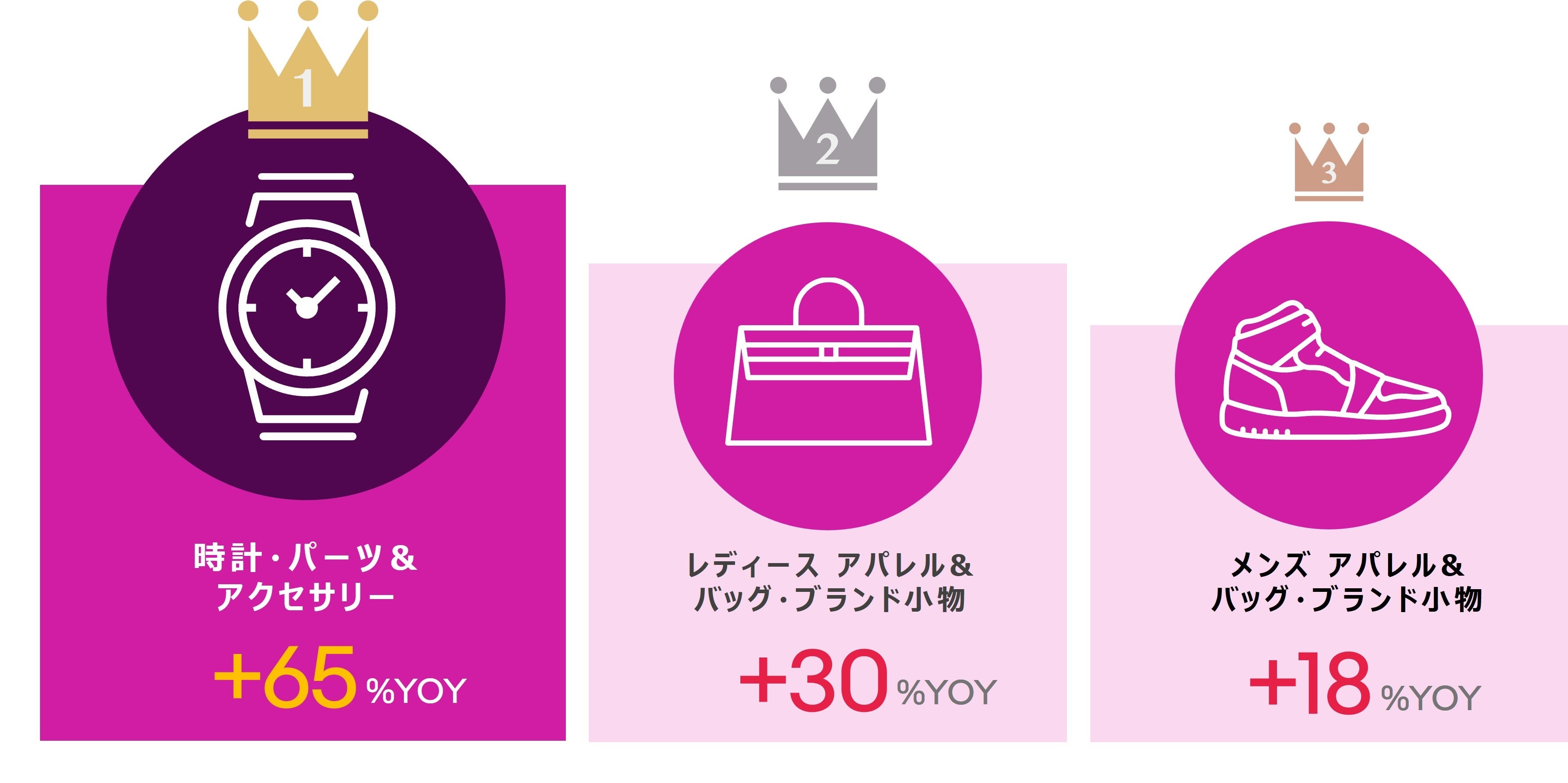 カテゴリーランキング:腕時計、ブランドバッグ、スニーカーが好調