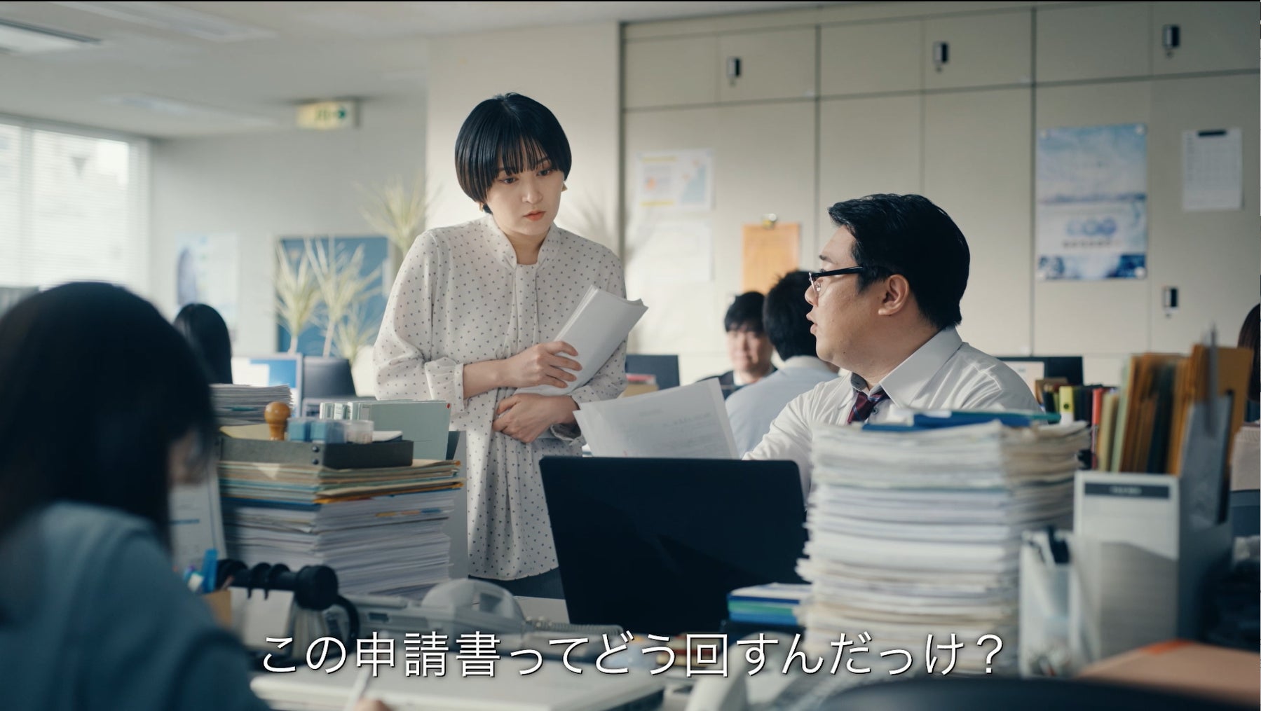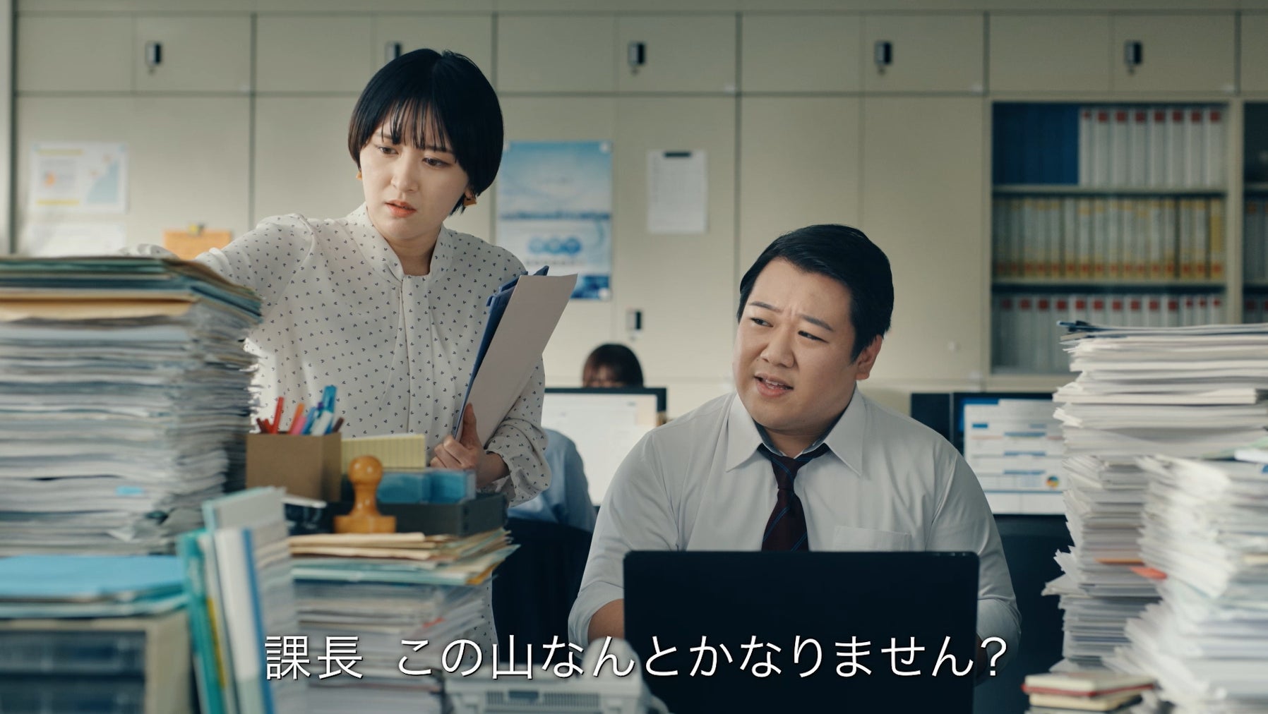 ラランドのお二人に、コラボフローを導入する前の「紙での申請・承認」の社内の光景をコミカルに演じていただきました。