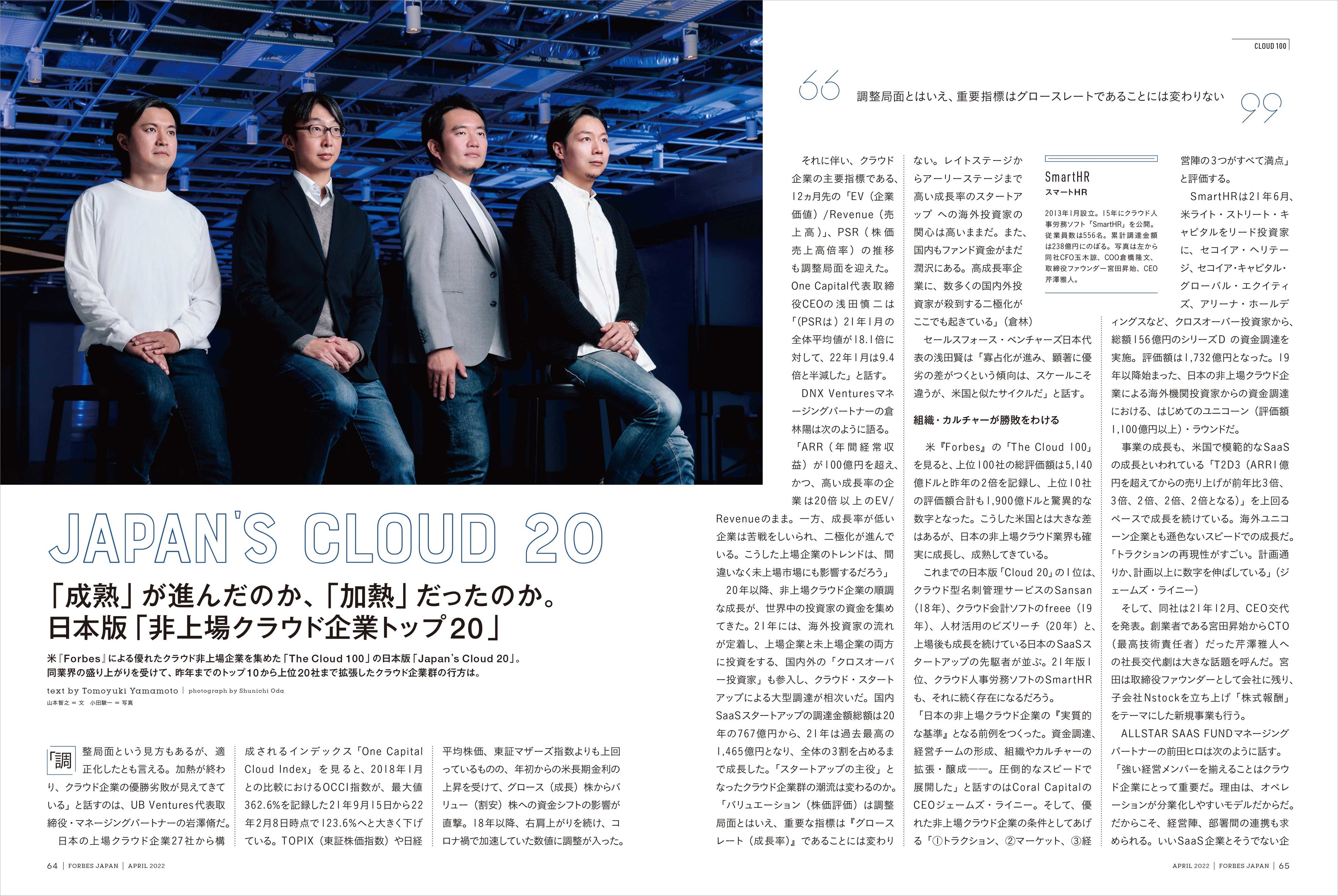 22年は、この「クラウド・スタートアップ・エコシステム」がどのように変化していくのか、『Forbes JAPAN』が発表するランキングに今後もご注目ください。