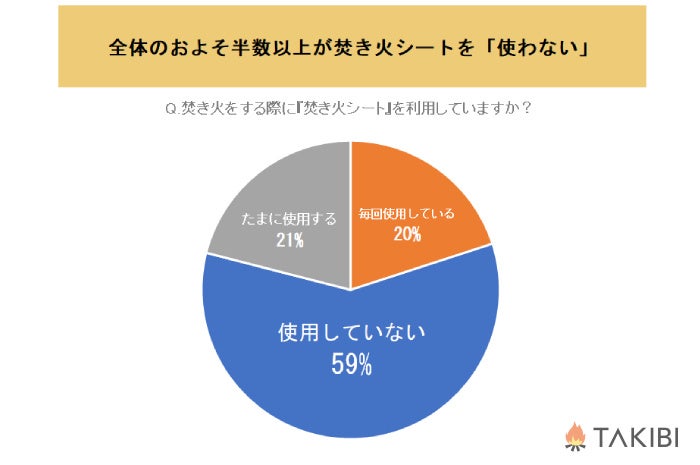 - 全体のおよそ半数以上が焚き火シートを「使わない」