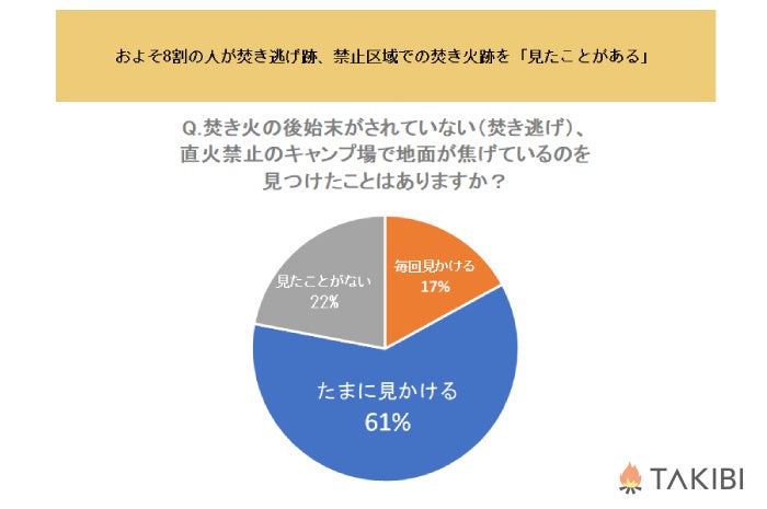 - およそ8割の人が焚き逃げ跡、禁止区域での焚き火跡を「見たことがある」