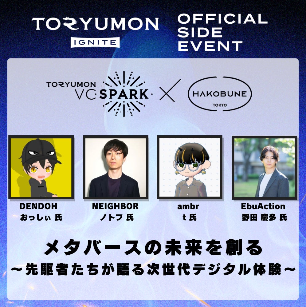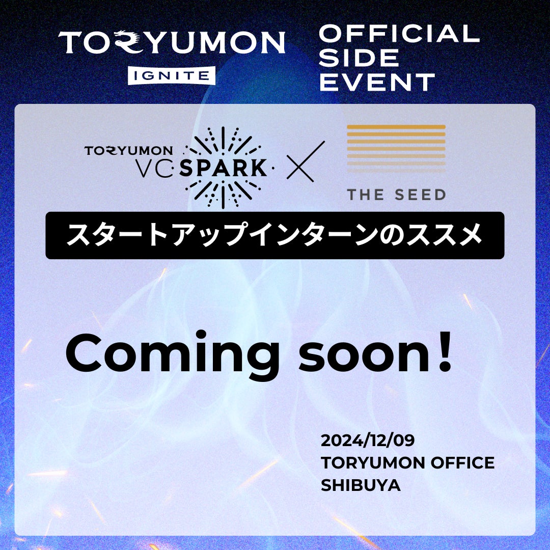 「TORYUMON TOKYO 2024 IGNITE」にVCイベントパートナーとして、複数のVCの方々の参画が決定いたしました。第1弾では、3社との公式サイドイベントを東京で開催します。