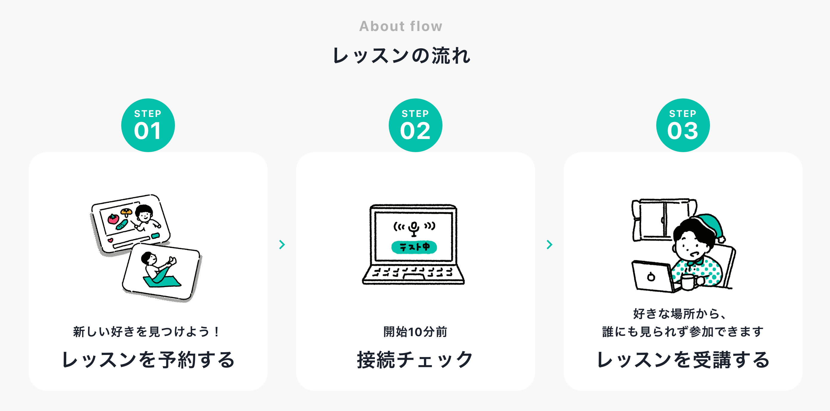 無理なく続けられる、来週も参加したくなる、そんなサービスを目指しています。
